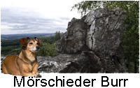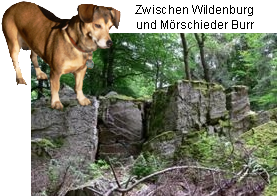 Nach den üblichen Einräumungsarbeiten, die Jule und ich vom wie immer mit unseren Überwürfen abgedeckten Sofa aus begutachteten - hund muss ja wissen, wo seine Sachen hinkommen -, gab es die erste Erkundungsrunde. Zum einen mussten wir herausfinden, wo wir die morgendliche, äh, Toilette erledigen konnten, zum anderen wollten wir einen ersten Blick auf die unmittelbare Umgebung werfen. Die Sanftheit der hügeligen Hochebene mit ihren Feldern, Wiesen und Wäldern gefiel mir gut. Nur so wirklich sanft ist die Gegend nicht, wie sich herausstellen sollte! Teufel, gibt es dort tiefe Täler und knorrige Höhen! Allein schon der Hausberg, die Mörschieder Burr, hat es in sich! Schön, interessant, aber auch anstrengend, selbst für Leute mit Vierbeinantrieb.