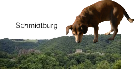 Lässig und cool und vor allem in freudiger Erwartung eines weiteren Heideurlaubs kletterte ich mit Jule ins Auto. Tja, und dann fuhren wir in die falsche Richtung! Wie sich herausstellte, fuhren wir in den Hun(d)srück. Ich bin ganz sicher, dass es Hundsrück heißen muss, denn er ist hunde- und schubbergut, obwohl es dort keine Heide gibt. Nicht einen einzigen Büschel habe ich gesehen! Dafür hatten manche Orte spaßige Namen. Wir wohnten in Mörschied, es gab beispielsweise aber auch so wohlklingende Namen wie Schlierschied, Katzenloch, Unterhosen... ach nee... Niederhosenbach oder Langweiler. Insbesondere das Sommerloch hätte mich noch interessiert, aber dorthin sind wir leider nicht gekommen. Wer nun glaubt, ich sei äußerst fantasiebegabt, sollte sich das mal im Atlas ansehen!